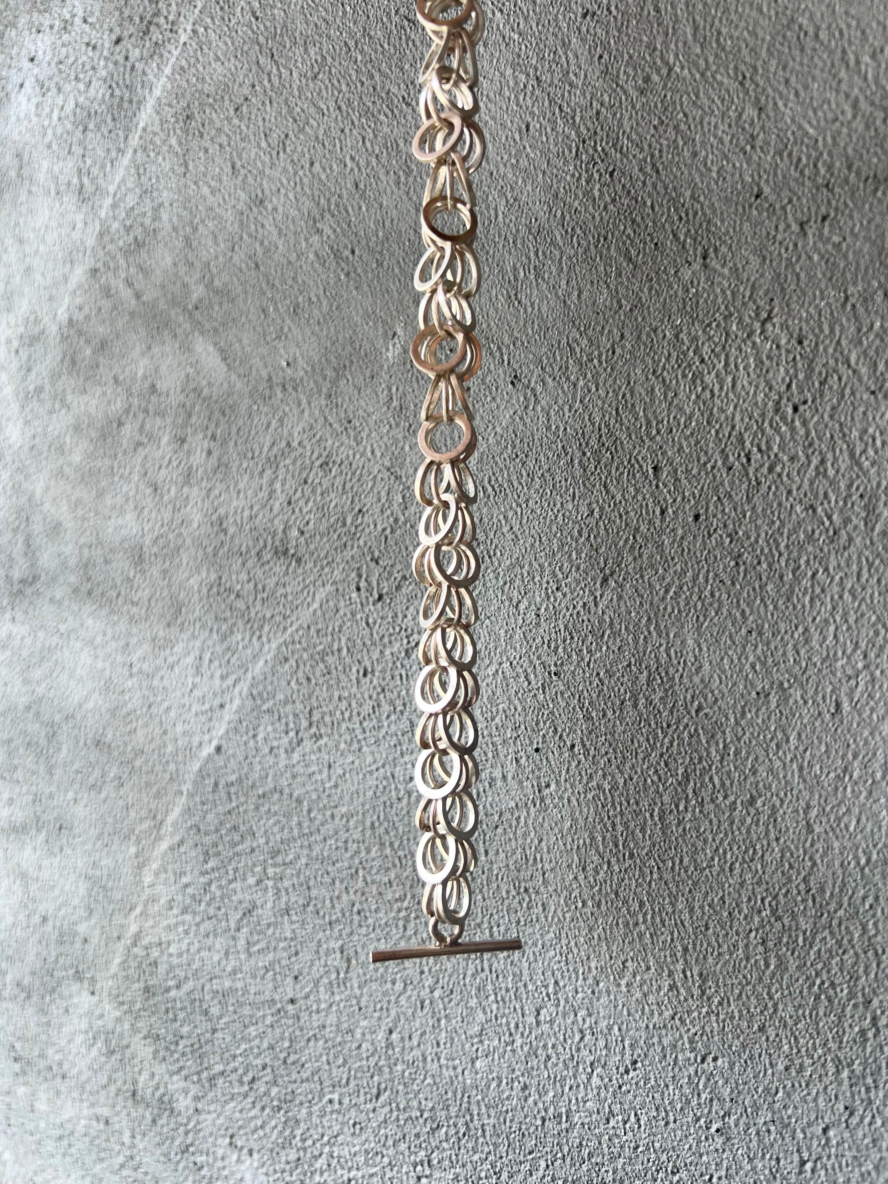 Vintage Silver 925 Random Circle Design Toggle Bracelet