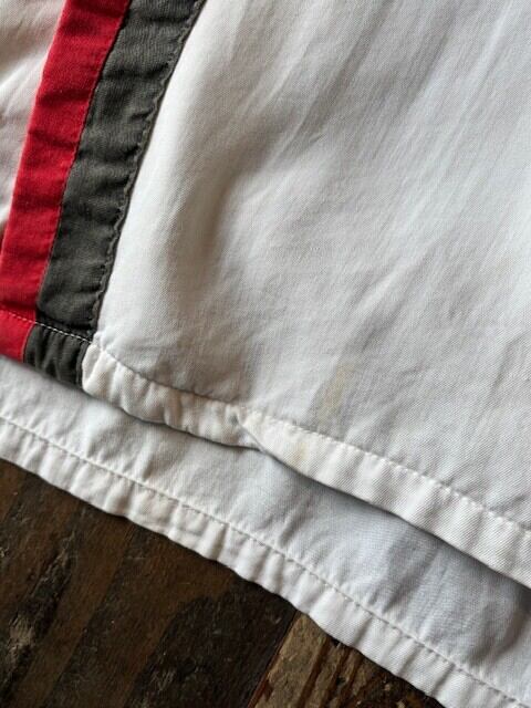 ホワイトのレーヨンに赤と黒の切り替え