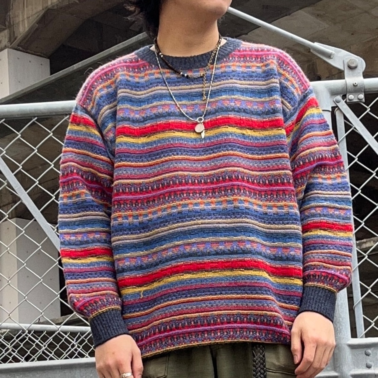 目を引く配色で、寒くなってからはインナーとして使いたくなるニット。